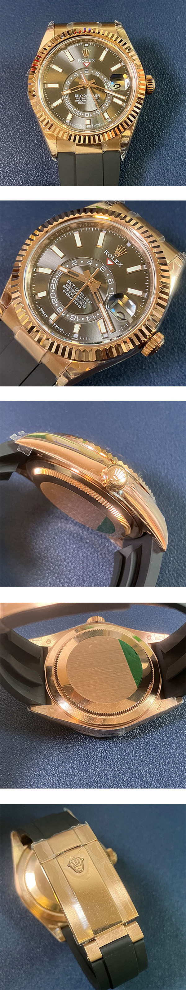 ムーブ: 全自動機械9002ムーブメントを搭載 素 材: 18K エバーローズ ゴールド 風 防: キズ防止対策済ARコーティングサファイアクリスタル ベルト: 黒ラバーベルト(18K エバーローズ ゴールドDバックル搭載) サイズ: 重量133g、ケース42mm、厚み13.5mm