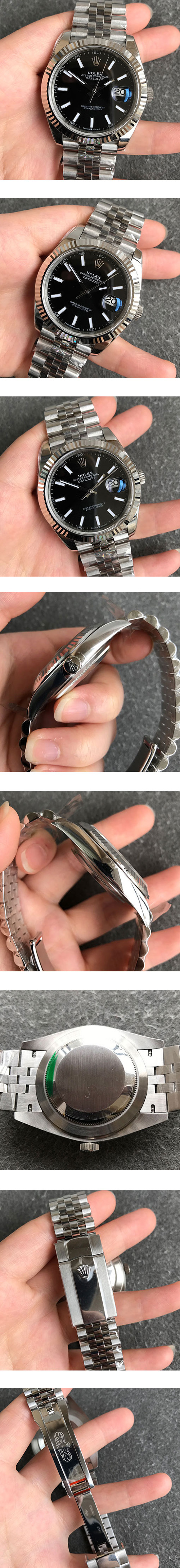 文字盤:ブラック文字盤、バーインデックス(夜光)、ルーレット刻印