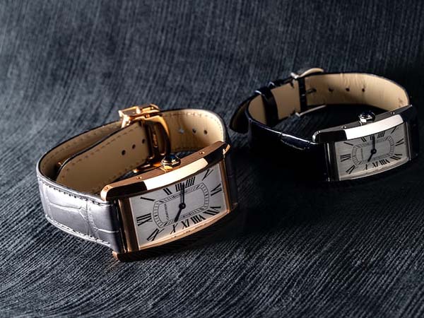 新しい「タンク アメリカン」は、ミニ、スモール、ラージの3サイズ、素材はピンクゴールドとスティール、ダイヤモンドをあしらったホワイトゴールドの3つの金属で展開する。お好みであれば、ミニとスモールのPG製「タンク アメリカン」には、ダイヤモンド入りやブレスレットタイプもある。なお同僚のマライカがすでに取材した、ブレスレットとたくさんのダイヤモンドをあしらったミニのWGもある。